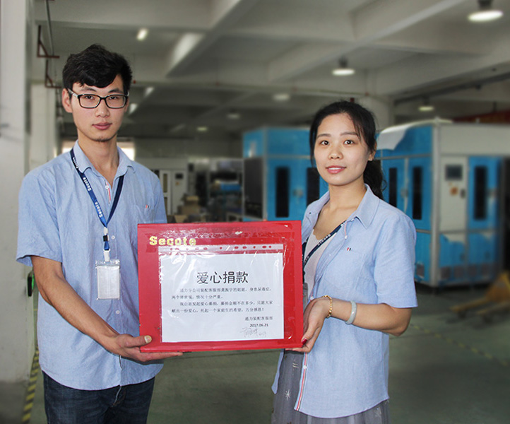 Secote set up the Love Foundation and aids nationwide regions affected by natural disasters. Secote actively contributes to society and has donated funds, goods and materials to help recover from SARS, tsunami, snowstorms, debris flow, Sichuan earthquake, Yushu earthquake, and other disaster situations.